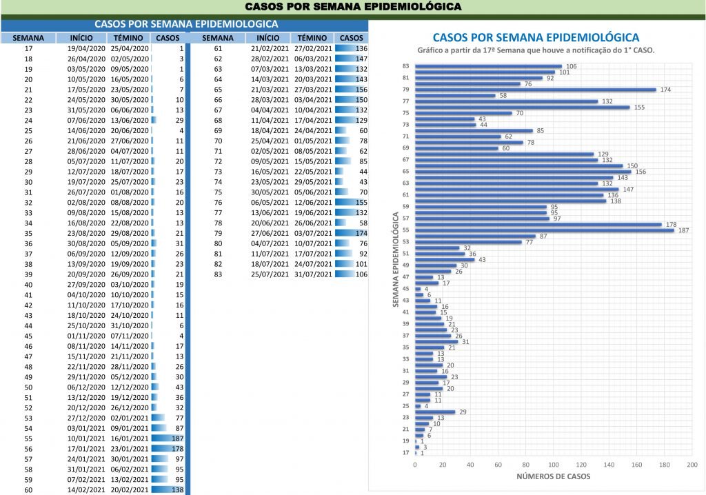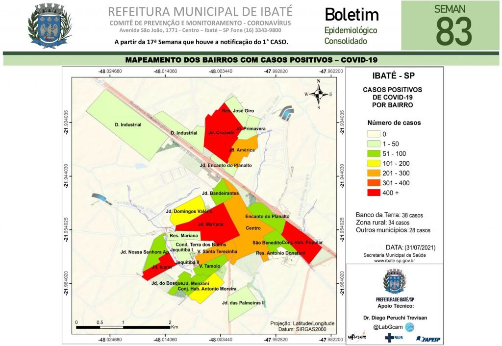 A Secretaria Municipal de Saúde de Ibaté, através da Vigilância Epidemiológica e do Gabinete de Prevenção e Monitoramento do Coronavírus, divulgou nesta segunda-feira, 02 de agosto, o Boletim Epidemiológico Consolidado da 83ª Semana sobre a situação da Covid-19, em Ibaté.