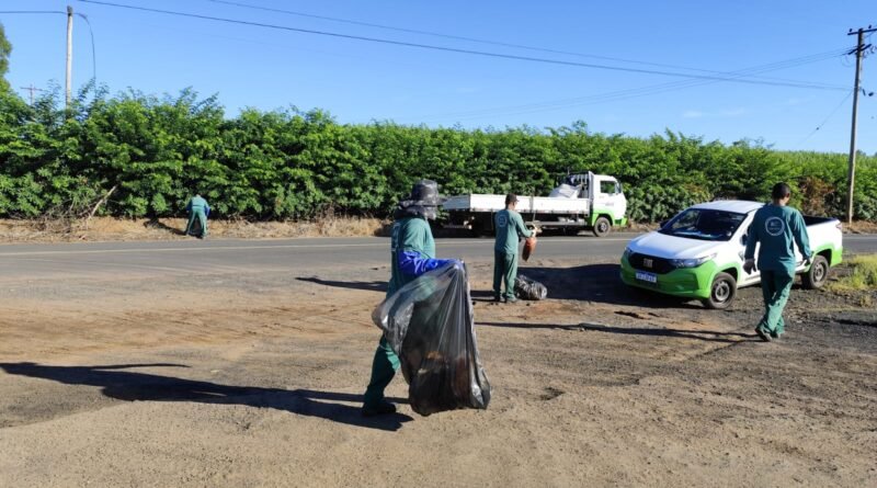 A equipe da Secretaria Municipal de Serviços Públicos realizou neste sábado, 04, a limpeza de uma área localizada próxima a rotatória da entrada principal da cidade, que dá acesso as chácaras.