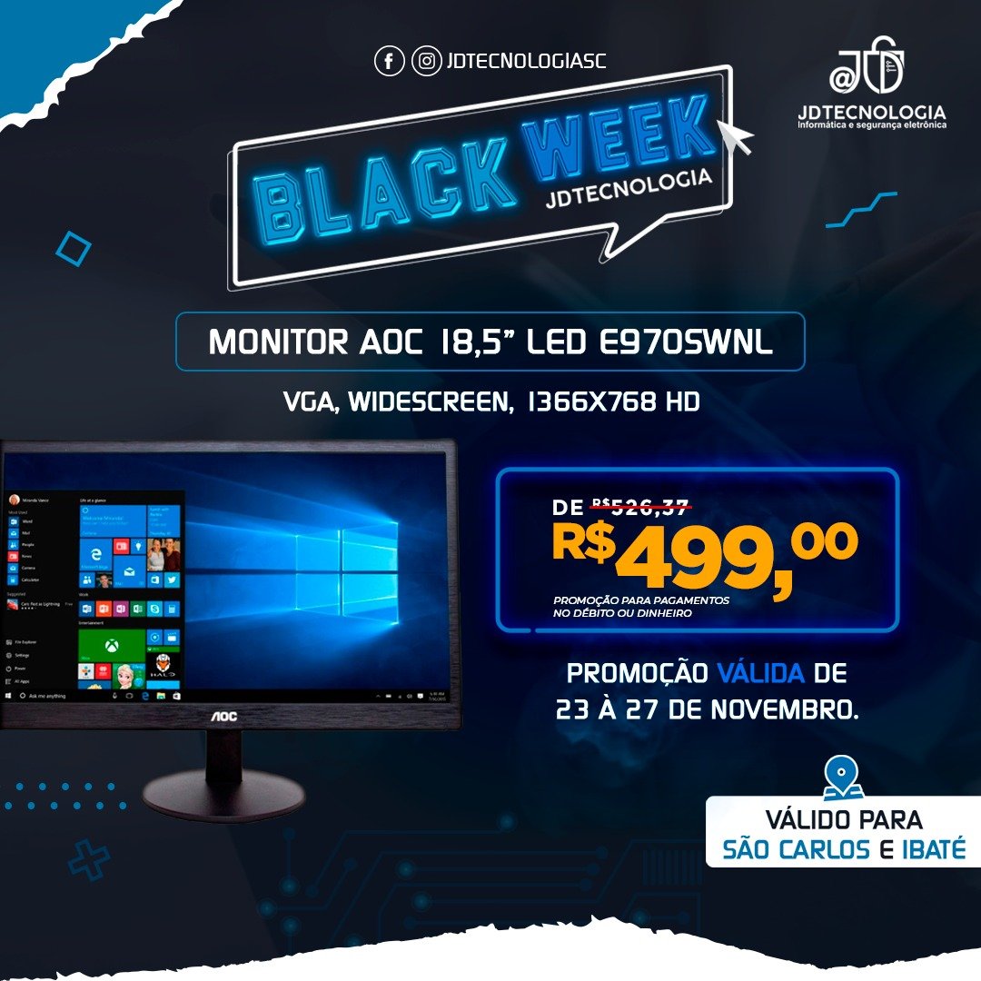 A JD Tecnologia, em São Carlos e Ibaté, está com a semana Black Friday, a ” Black Week”, com grandes promoções.