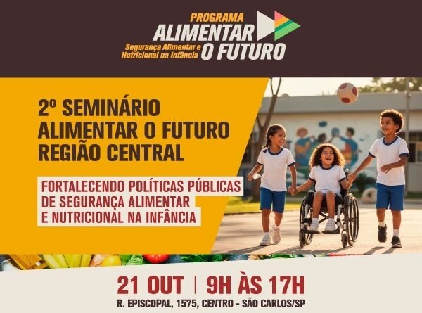 No dia 21 de outubro, das 9h às 17h, no auditório do Paço Municipal, São Carlos recebe o 2º Seminário Alimentar o Futuro – Região Central, iniciativa que reúne gestores públicos, conselheiros, profissionais da educação, nutricionistas e representantes do setor privado em torno de um objetivo comum: fortalecer as políticas públicas de Segurança Alimentar e Nutricional voltadas à infância.