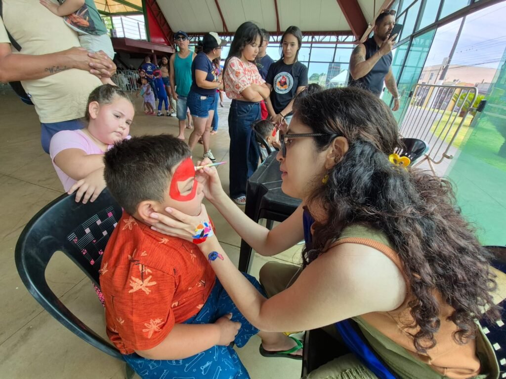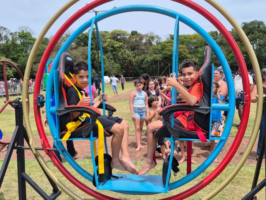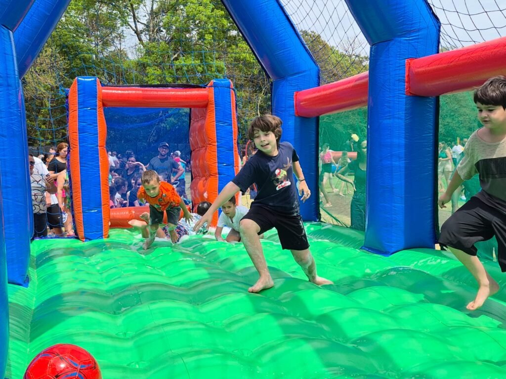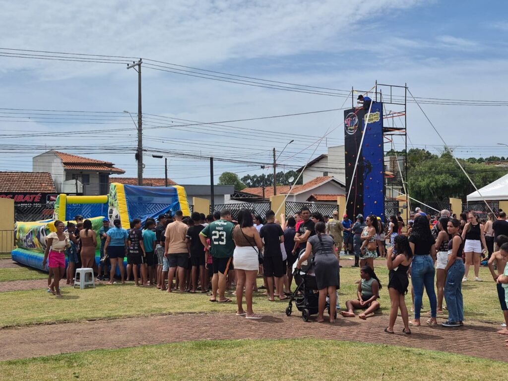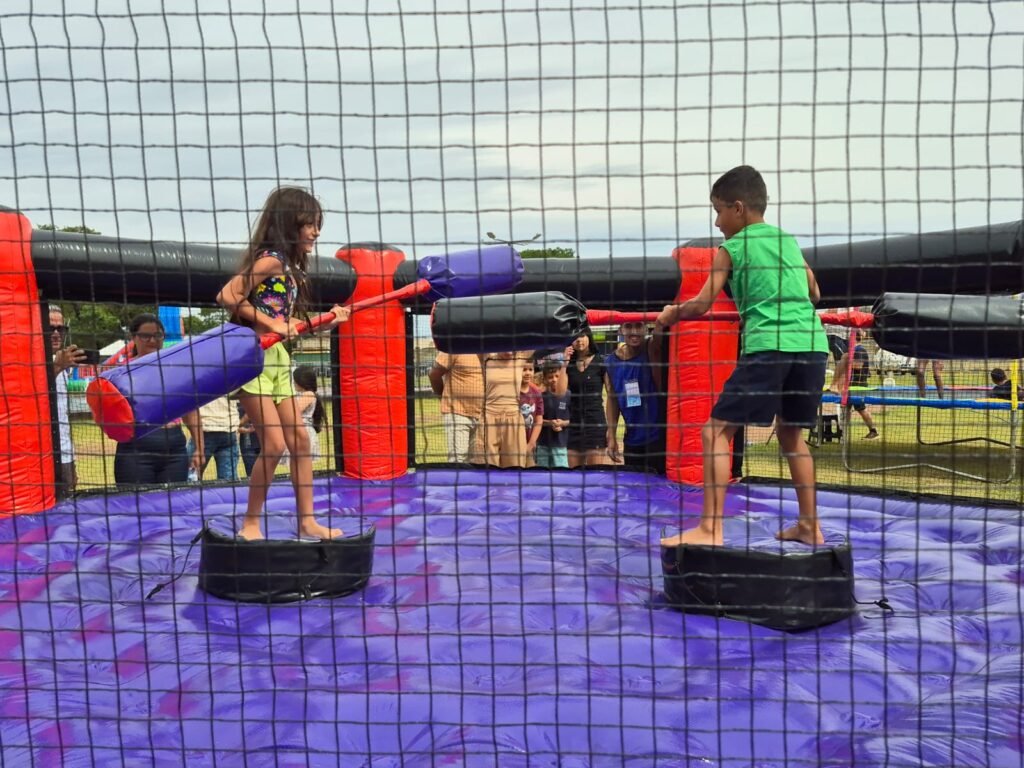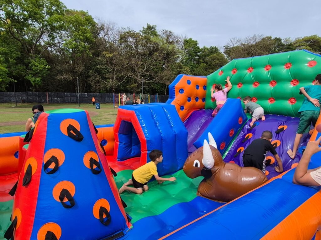 A manhã foi marcada por diversas atrações recreativas e esportivas, pensadas para atender crianças de todas as idades, entre elas, brinquedos infláveis, passeio de trenzinho, pipoca, algodão-doce, lanche e suco, além de pintura facial, tirolesa, escalada e orbital.