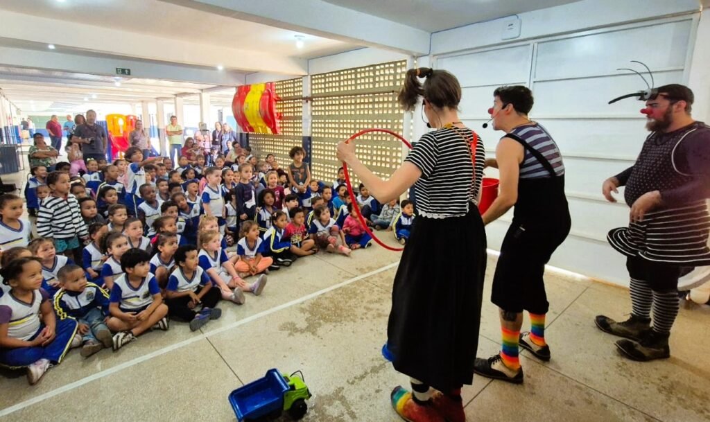 Na manhã desta segunda-feira (15/09), a encenação ocorreu no CEMEI Dário Rodrigues. Os palhaços Orelhão, Tatah e Astollfo conduzem o espetáculo, de 20 minutos, mostrando como identificar e eliminar criadouros do mosquito transmissor da dengue, zika e chikungunya.
