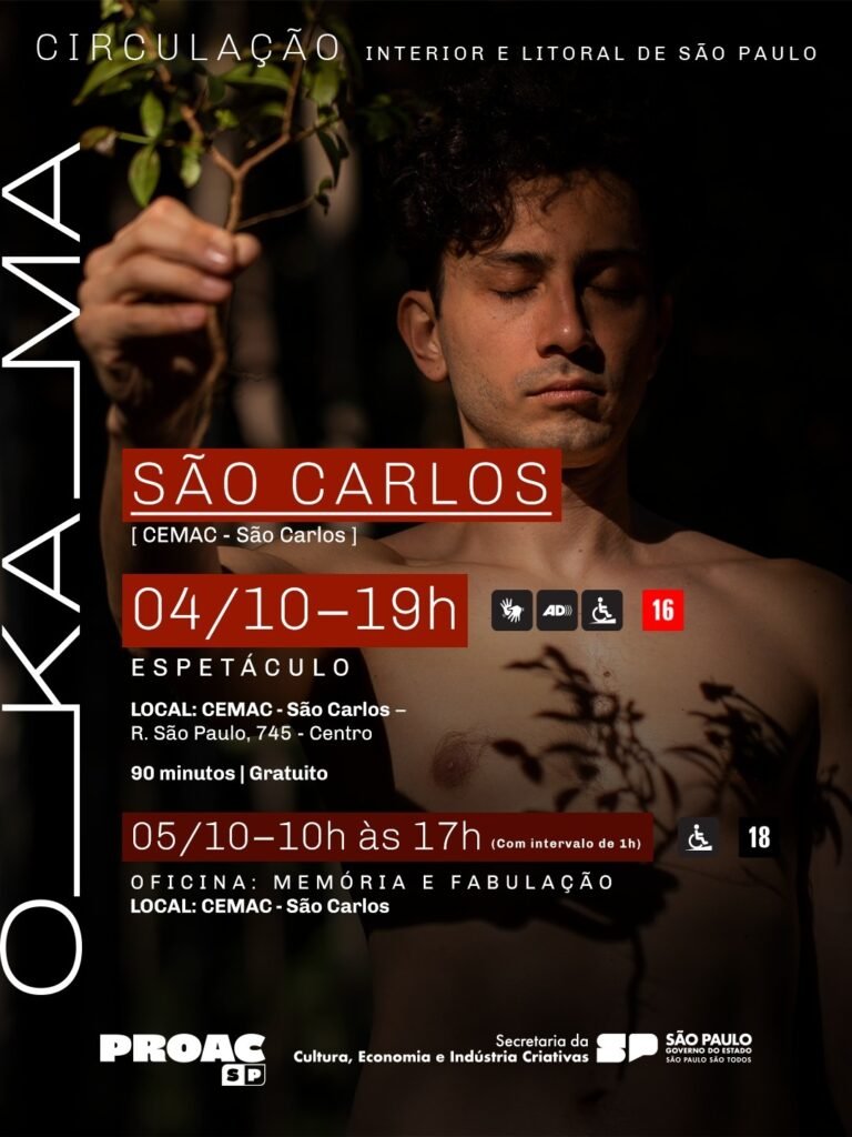 Além da programação no Teatro Municipal, o Centro Municipal de Artes e Cultura (CEMAC), na Rua São Paulo, 745, recebe no sábado (4/9), às 19h, o espetáculo Okama. No domingo (5/9), das 10h às 17h, o espaço também sedia a oficina Memória e Fabulação – Okama.