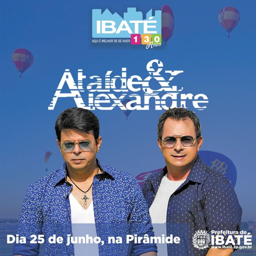 Finalizando as Festividades dos 130 anos, a partir das 20 horas, na Pirâmide da Mata do Alemão, a dupla sertaneja Ataíde & Alexandre se apresenta com um Show muito especial. Com mais de 30 anos de carreira, os artistas prepararam um repertório que traz sucessos como “Laço Aberto”, “Tá Nervoso, Vai Pescá!”, “Coração Na Contra-mão”,”Estrada do Amor”, “Deus me Livre”, “Quase Me Chamou de Amor”, atual música de trabalho, entre outras que ficaram marcadas por toda uma geração.
