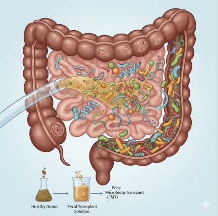 Em termos simples, trata-se de um transplante de fezes de pessoas saudáveis para quem tem desequilíbrio na microbiota intestinal, com a ideia de repovoar o intestino com bactérias benéficas capazes de melhorar a saúde metabólica.
