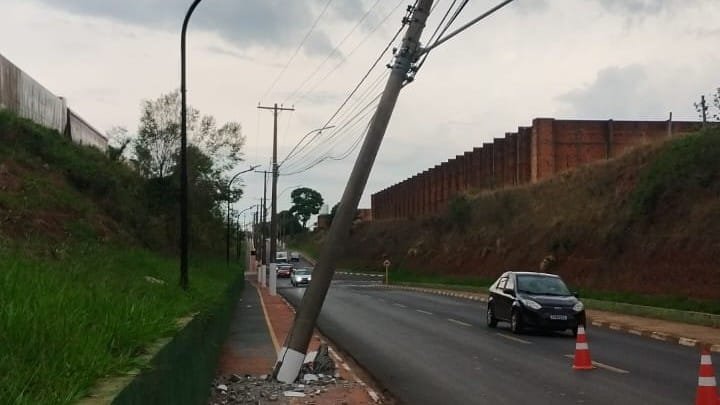 Veículo colide com poste próximo do Distrito Industrial de Ibaté e manutenção pode causar suspensão temporária de energia
