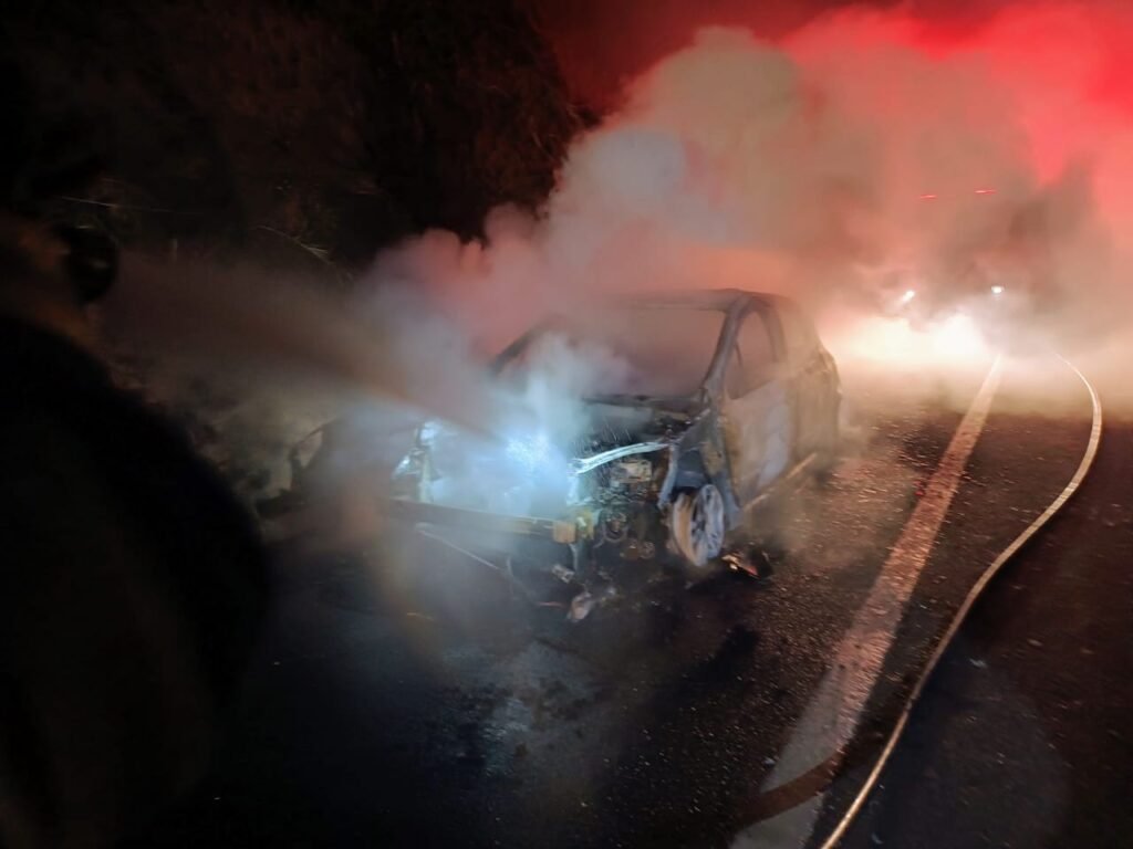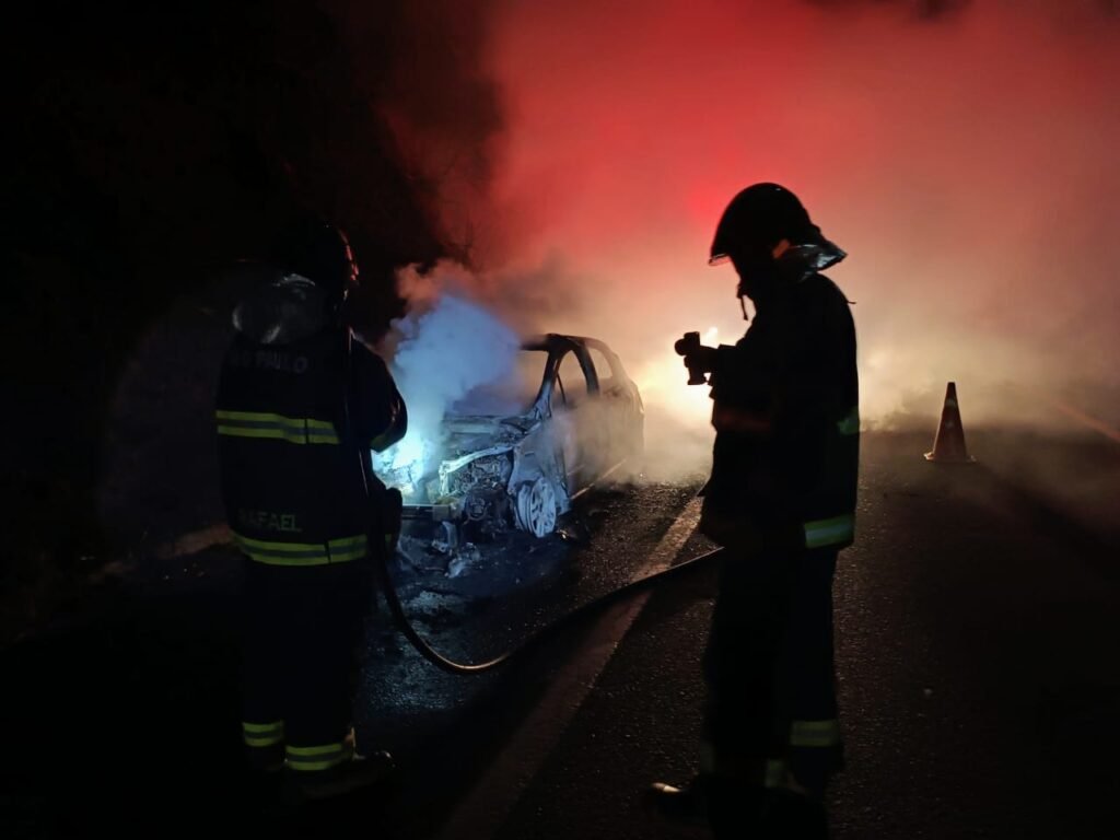 Veículo pega fogo na SP-215 próximo ao Parque Itaipu