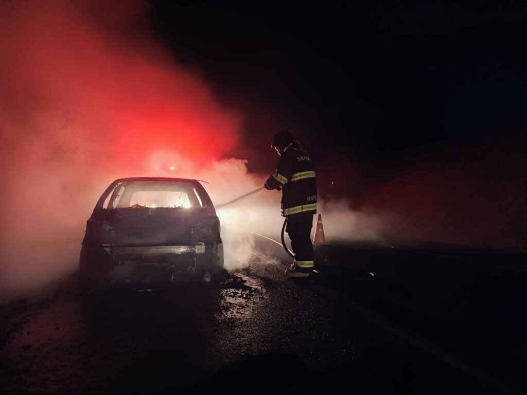 Um caminhoneiro que passava pelo local tentou conter as chamas com um extintor de incêndio de grande porte, mas o fogo se alastrou rapidamente.