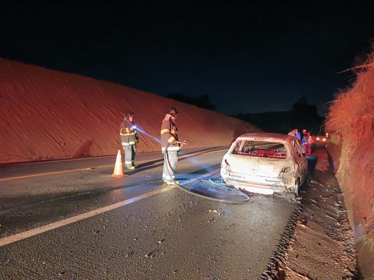 Um caminhoneiro que passava pelo local tentou conter as chamas com um extintor de incêndio de grande porte, mas o fogo se alastrou rapidamente.