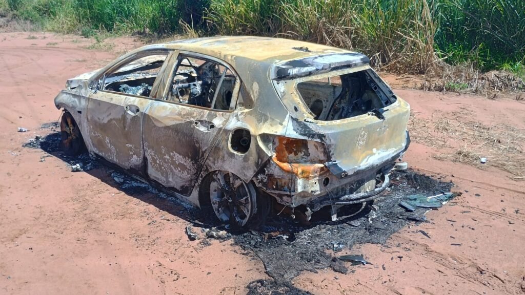 Veículo roubado é encontrado incendiado em estrada rural de Ibaté