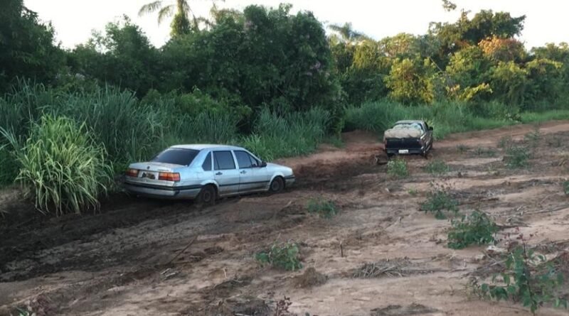 No local os PMs localizaram dois veículos atolados, sendo uma GM S10 é um VW Santana que foram apreendidos.