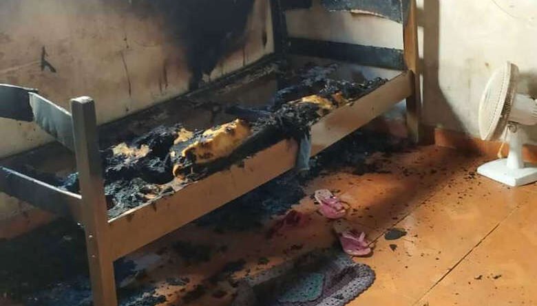Autoridades policiais que estiveram na casa apuraram que a cama onde Rosa Maria repousava teria sido consumida pelo incêndio. Embaixo dela, uma vasilha plástica destruída pelo foto. No chão, marcas de incêndio e onde o corpo da vítima estaria caído.